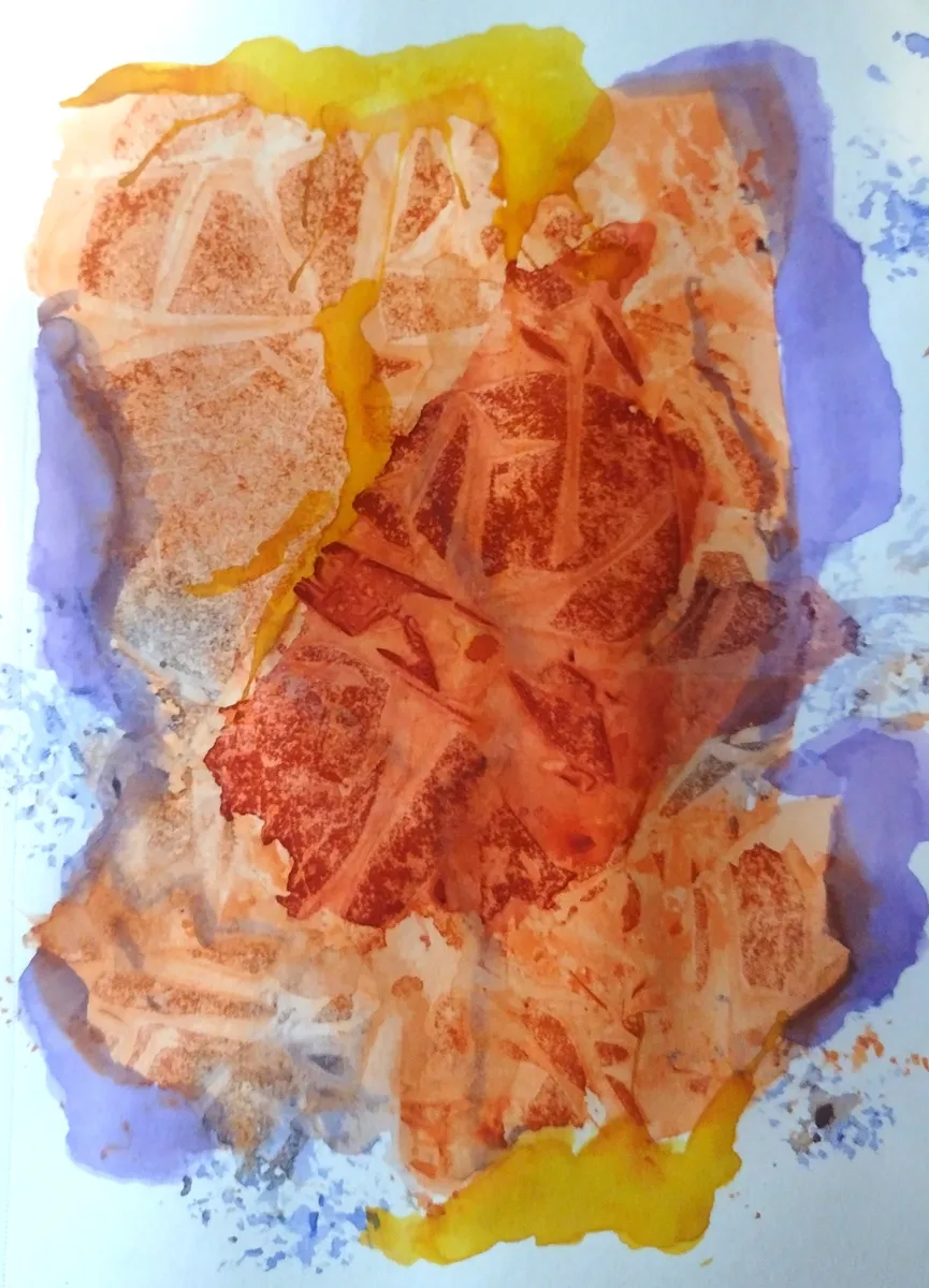Original abstract watercolor in layers of orange and violet. My prints are made with the GICLEE process giving ultra-detailed image resolution and vibrant colors on premium paper.