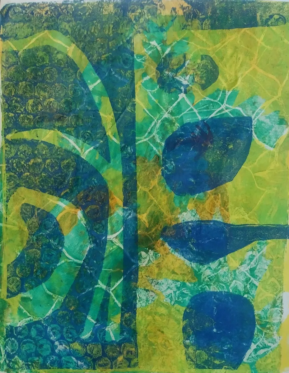 Original abstract layered acrylic print in shades of bright blue and lime green featuring plant-like forms. Very strong forms in this piece and my beloved blues and greens! My prints are made with the GICLEE process giving ultra-detailed image resolution and vibrant colors on premium paper. All prints are 11X14.
