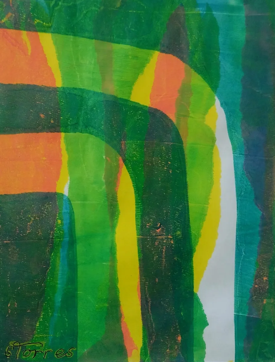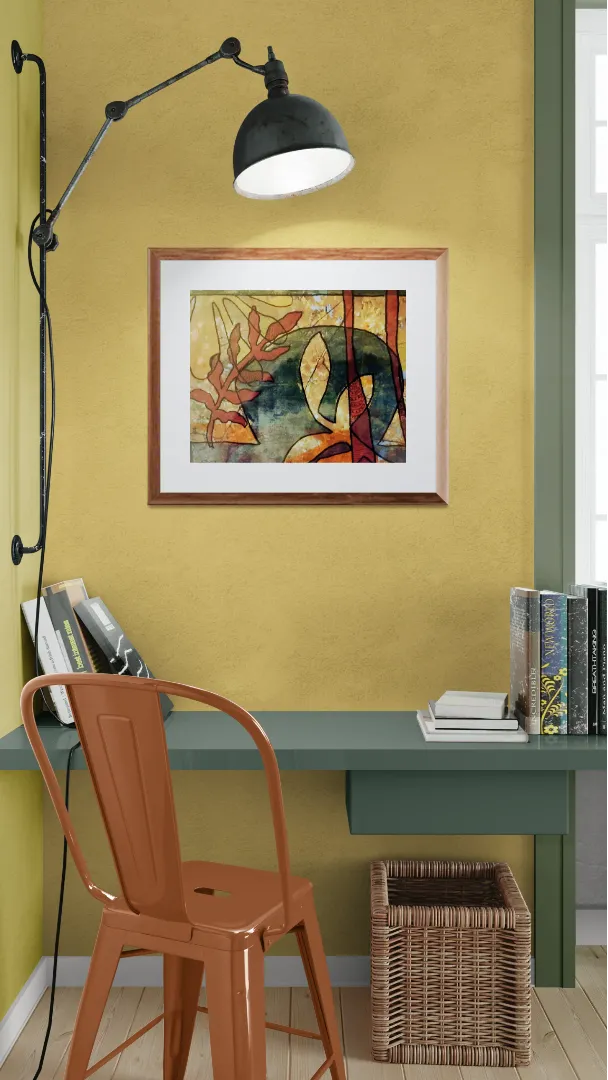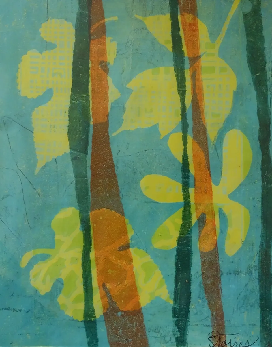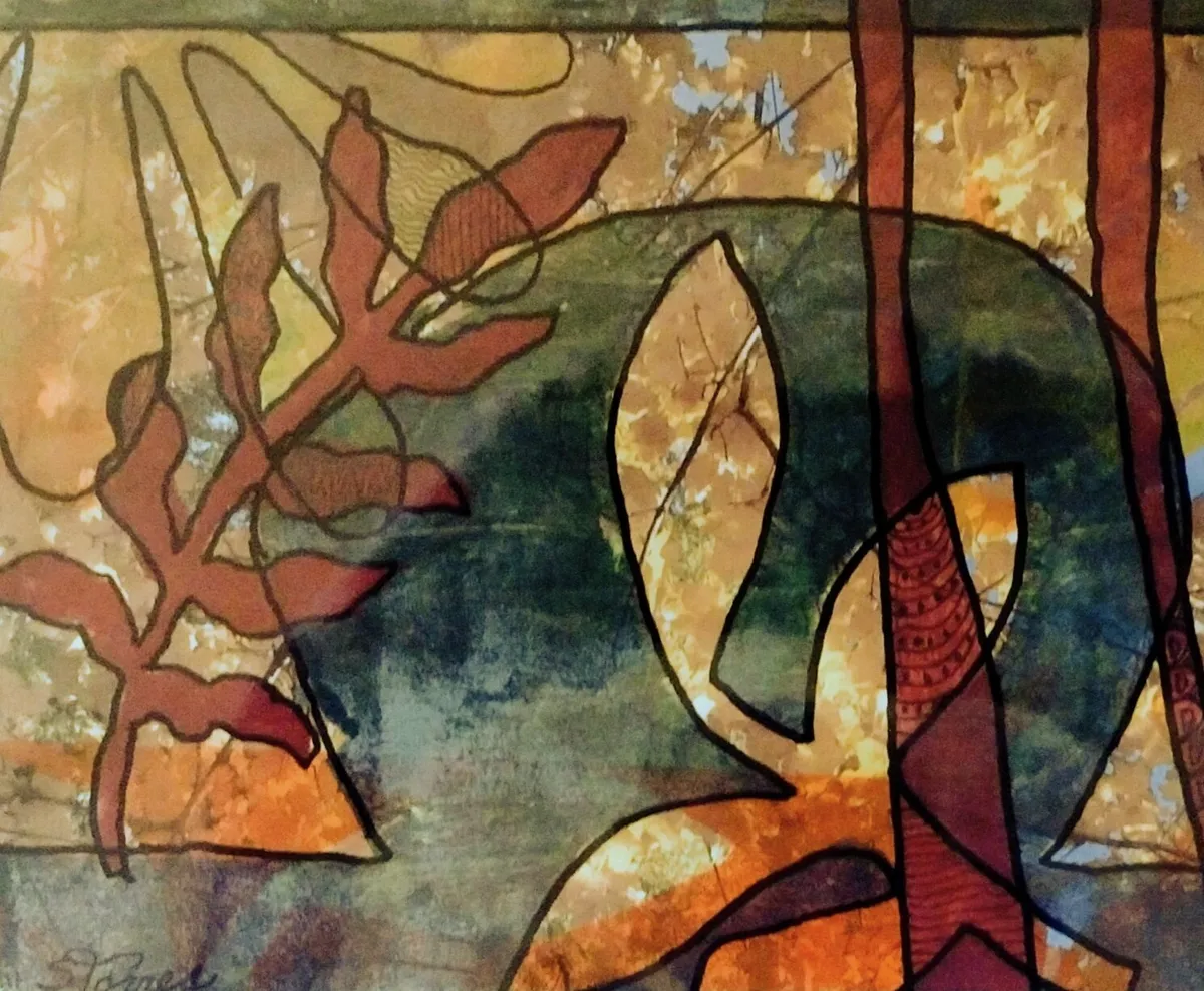 Original acryic print with acrylic pen details in yellow, green and rust printed on a photograph of yellow leaves. Aside from printing a first layer of colored background, I wondered if I could use a colored photo as my first 'layer'. I like how that worked in this piece. What do you think? GICLEE process print - ultra-detailed image - vibrant colors - premium paper.