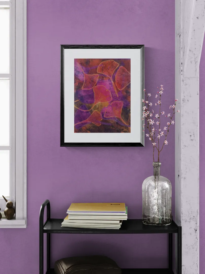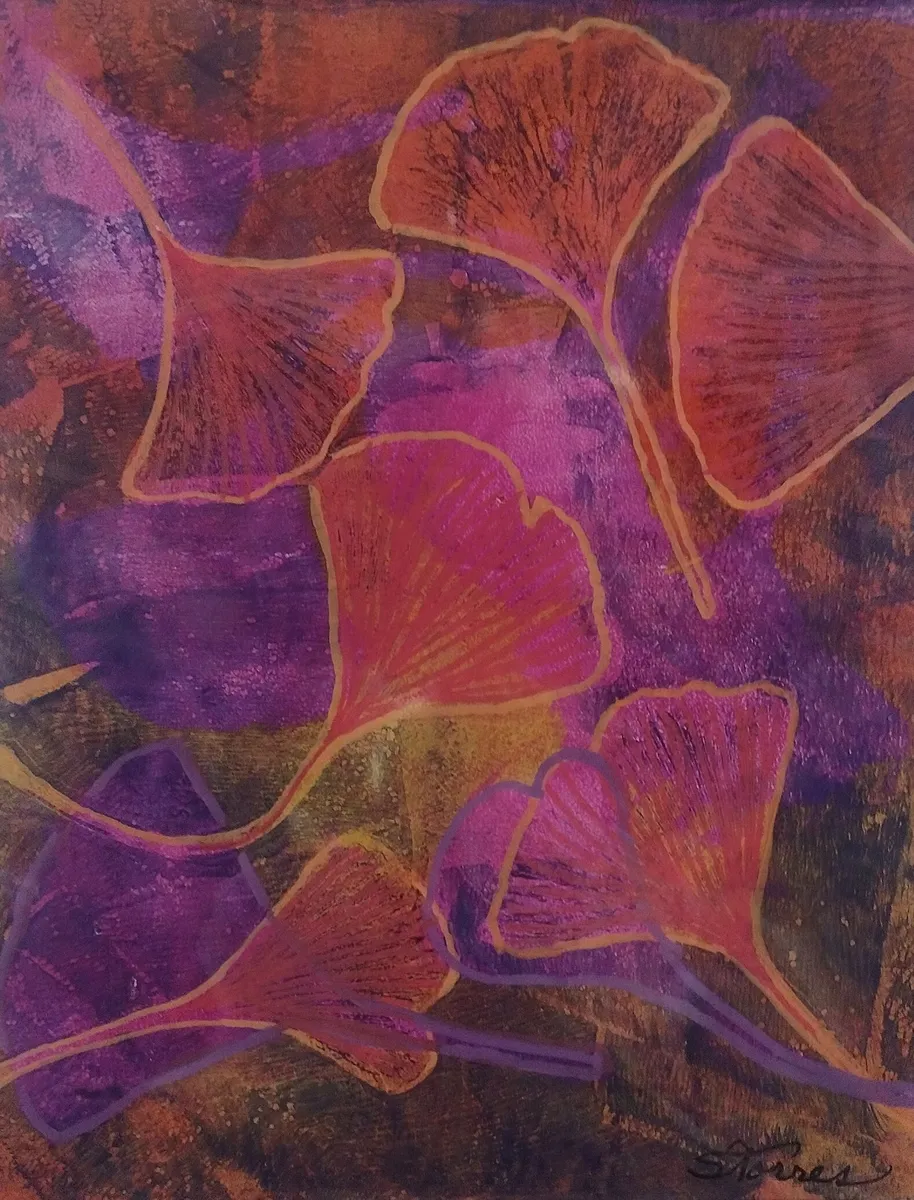 Original acrylic print of layered and textured leaf patterns in shades of orange, yellow and magenta. My prints are made with the GICLEE process giving ultra-detailed image resolution and vibrant colors on premium